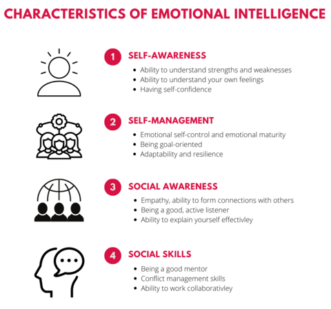 As Goleman states in his book, emotional intelligence can be broken down into 4 main characteristics; self-awareness, self-management, social awareness, and social skills. With these in mind, employees can work on developing and improving their emotional intelligence.